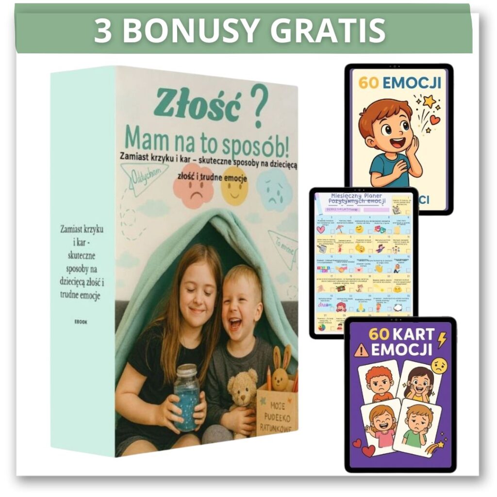 praktyczny e-book dla rodziców dzieci w wieku 2–9 lat, który uczy, jak wspierać dziecko w trudnych emocjach bez krzyku, kar i poczucia winy. Proste, skuteczne zabawy zamiast bezradności.