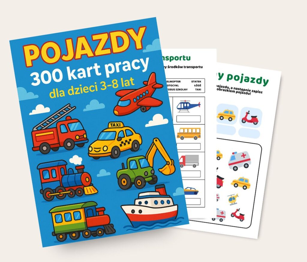 Od zawsze fascynowało mnie, jak dzieci potrafią godzinami bawić się autkami, pociągami czy samolotami – odkrywając świat z ogromną ciekawością. Dlatego stworzyłam zestaw kart pracy i kolorowanek o pojazdach, który pozwala przenieść tę pasję na papier – w formie zabawy, która uczy i rozwija.